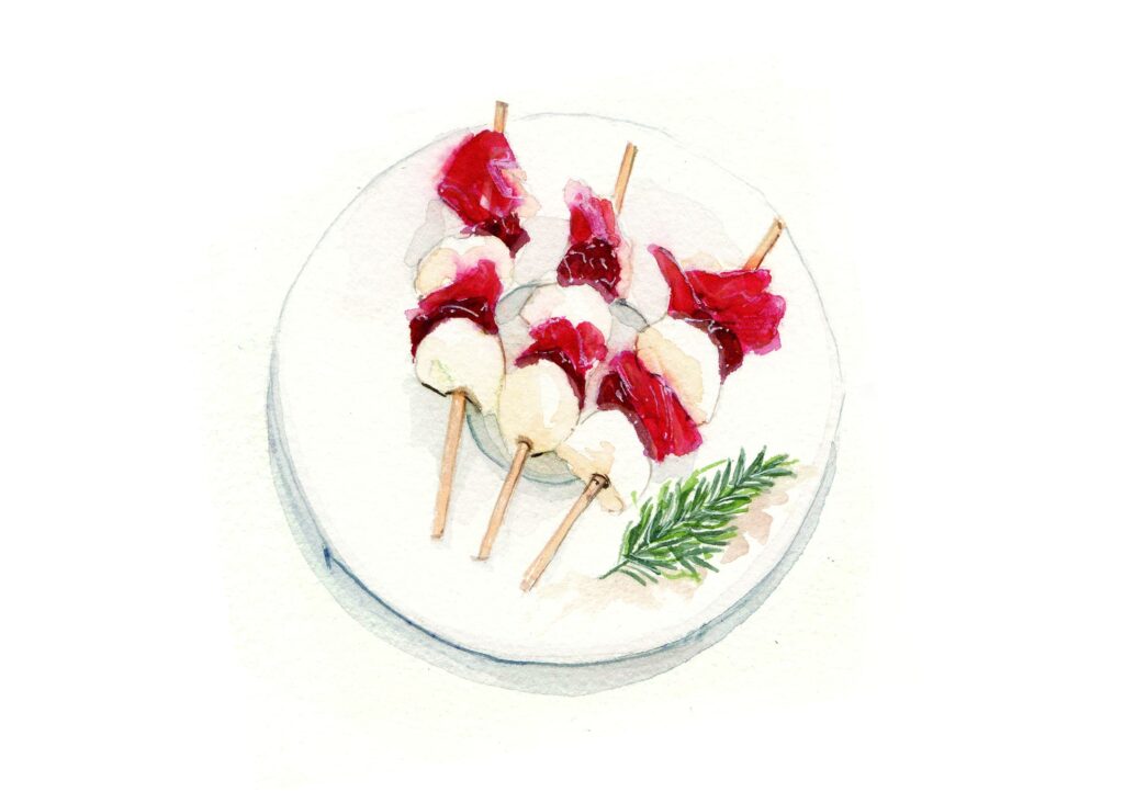 Mozzarella, GoodJamón and sundried tomato appetizer kebabs